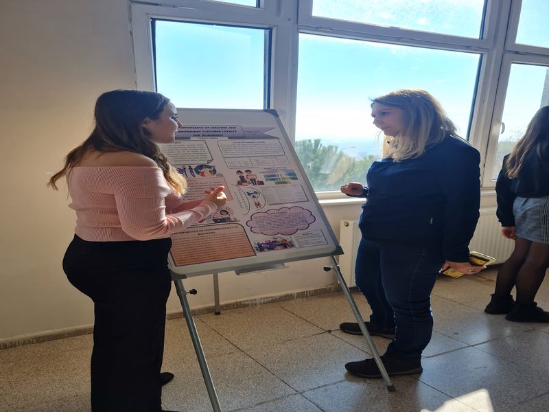 27 Aralık 2022 tarihinde İşletme (İngilizce) Bölümü 4. sınıf öğrencileri tarafından Graduation Projects dersi kapsamında poster sunumu etkinliği gerçekleştirildi. Dönem boyunca mezuniyet projeleri üzerinde çalışan öğrenciler, İşletme Fakültesi’nin 2. katında sundukları posterler ile ziyaretçilere projelerini anlattı. Sunum, fakülte öğretim üyeleri, idari personel ve öğrenciler tarafından yoğun ilgiyle karşılandı. Etkinlik boyunca katılımcılara müzik eşliğinde yiyecek ve içecek ikramı yapıldı. Öğrencilerin ilgi duydukları bir alanda, bilimsel ilkelere uyarak hazırladıkları araştırma projelerine dair posterler katılımcıların beğenisine sunuldu. Etkinliğin sonunda, posterler hakkında bilgilendirilen katılımcılardan oy kullanıp en çok beğendikleri sunumu seçmeleri istendi. En iyi poster seçimi için oy kullanıldı ve en çok oyu alan öğrenci, “The Importance of Creating and Maintaining Customer Loyalty for Business” isimli posteri ile Fadime ALABAŞ oldu. “Being A Woman In Businesslife: Strategies to Overcome The Glass Ceiling Syndrome” isimli posterleri ile Emine Selen ÇETİN ve Gizem KANGALLI ikinci olurken, Yaren SAMUK ve Özge İpek ÜNSAL “The Impact of Influencer Marketing on Purchasing Process” posteri ile üçüncü oldular. 1’inciliği hak eden Fadime ALABAŞ’a Graduation Projects dersinin öğretim üyesi Doç. Dr. Nuray DEMİREL ARICI tarafından Başarı Belgesi ve kitap hediyesi verildi.